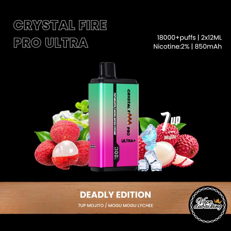 The CRYSTAL Fire Pro Ultra 18k Puffs Disposable Vape is the ultimate choice for vapers in Dubai seeking an innovative and long-lasting vape. Engineered for performance and packed with style, this device offers a massive puff capacity of up to 18,000 puffs, ensuring weeks of uninterrupted vaping.