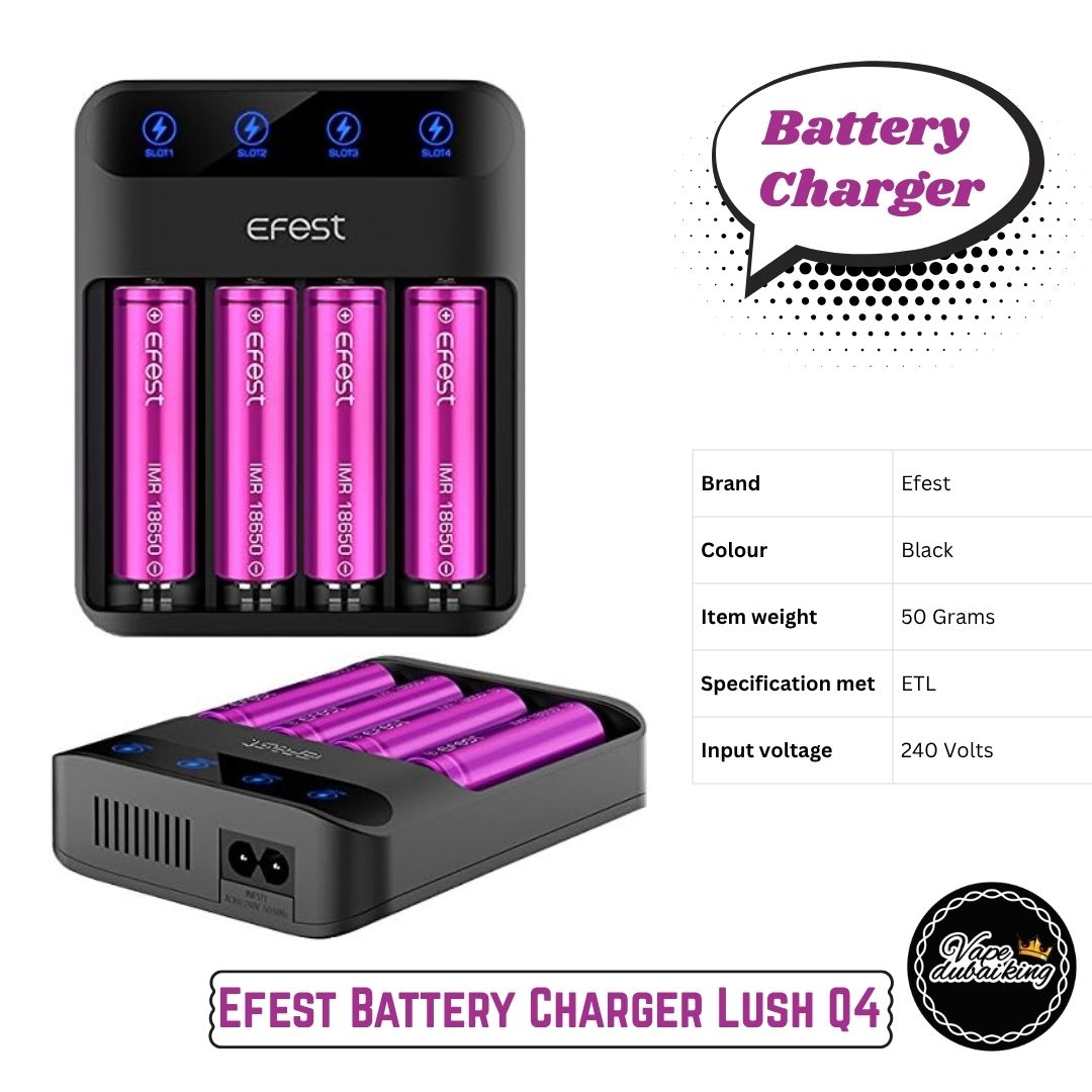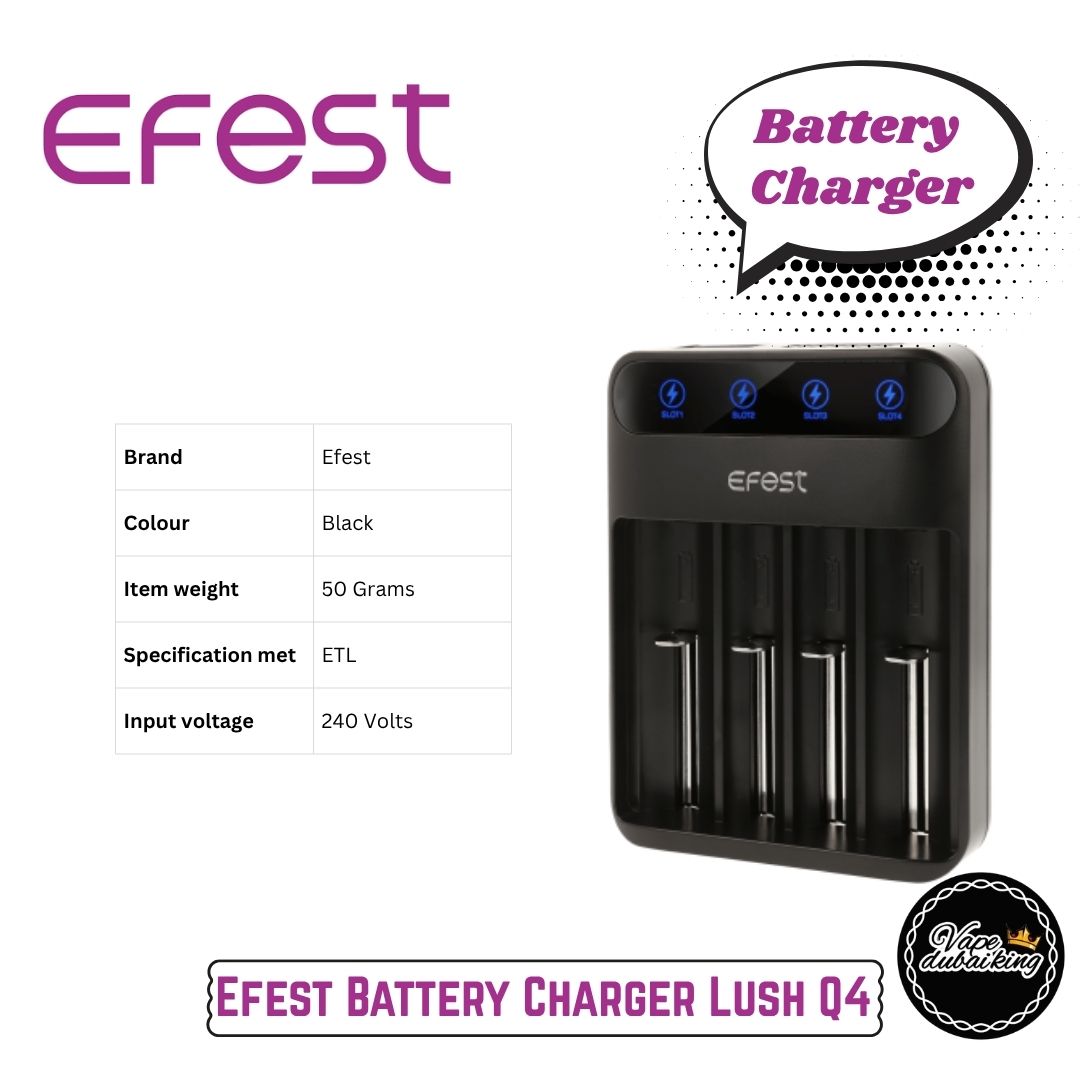 Efest Battery Charger Lush Q4, Smart & Fast Charging for Vape Batteries in UAE