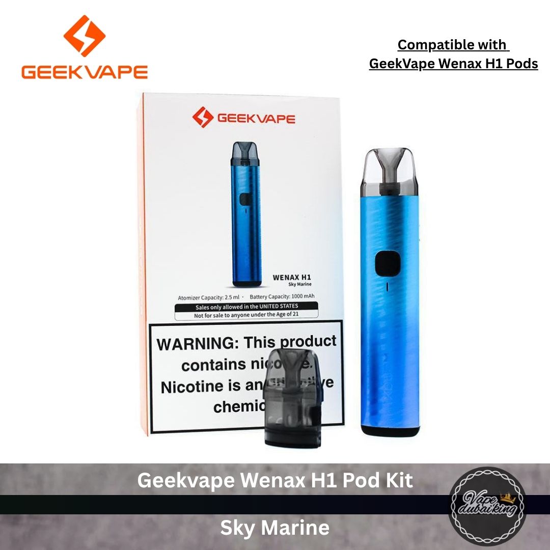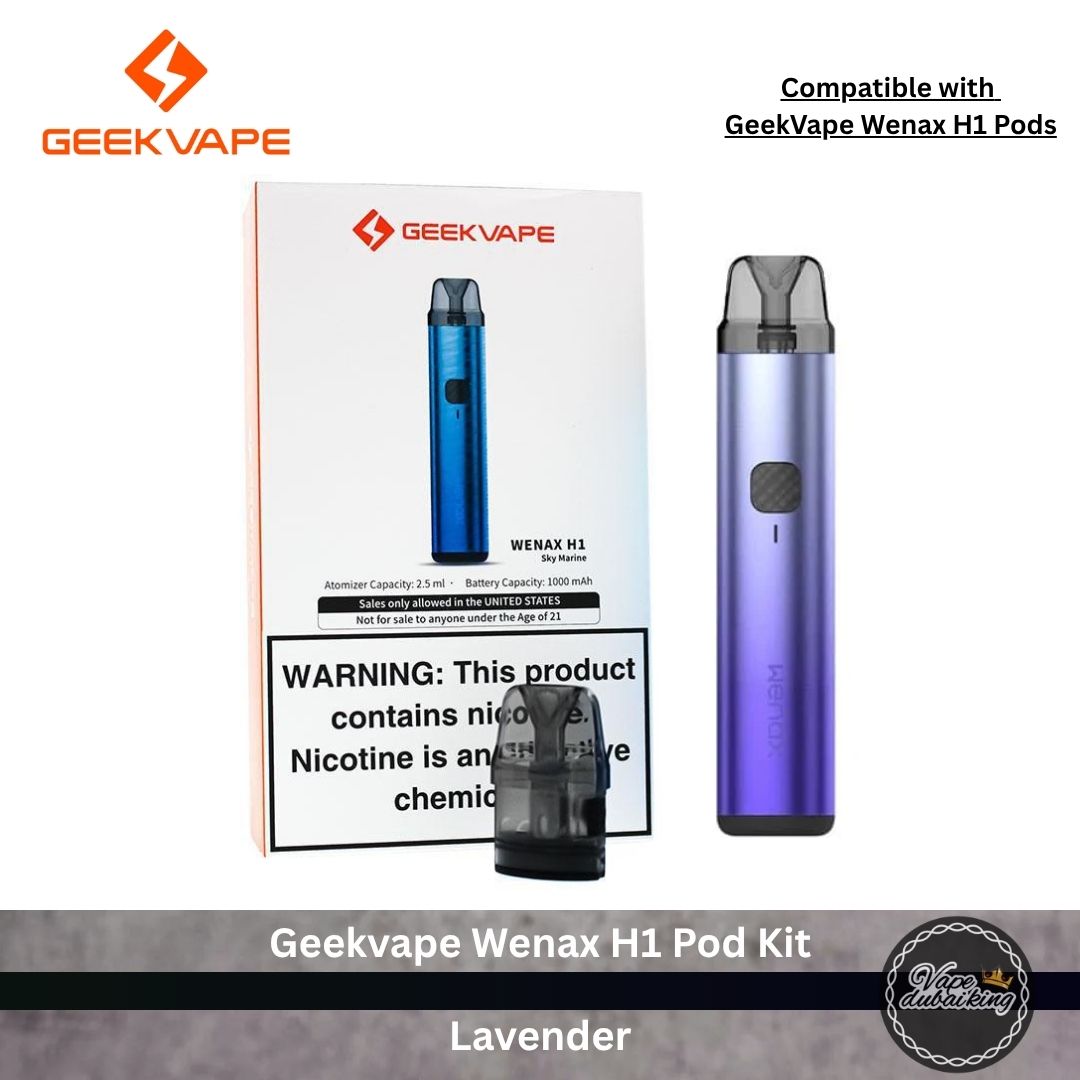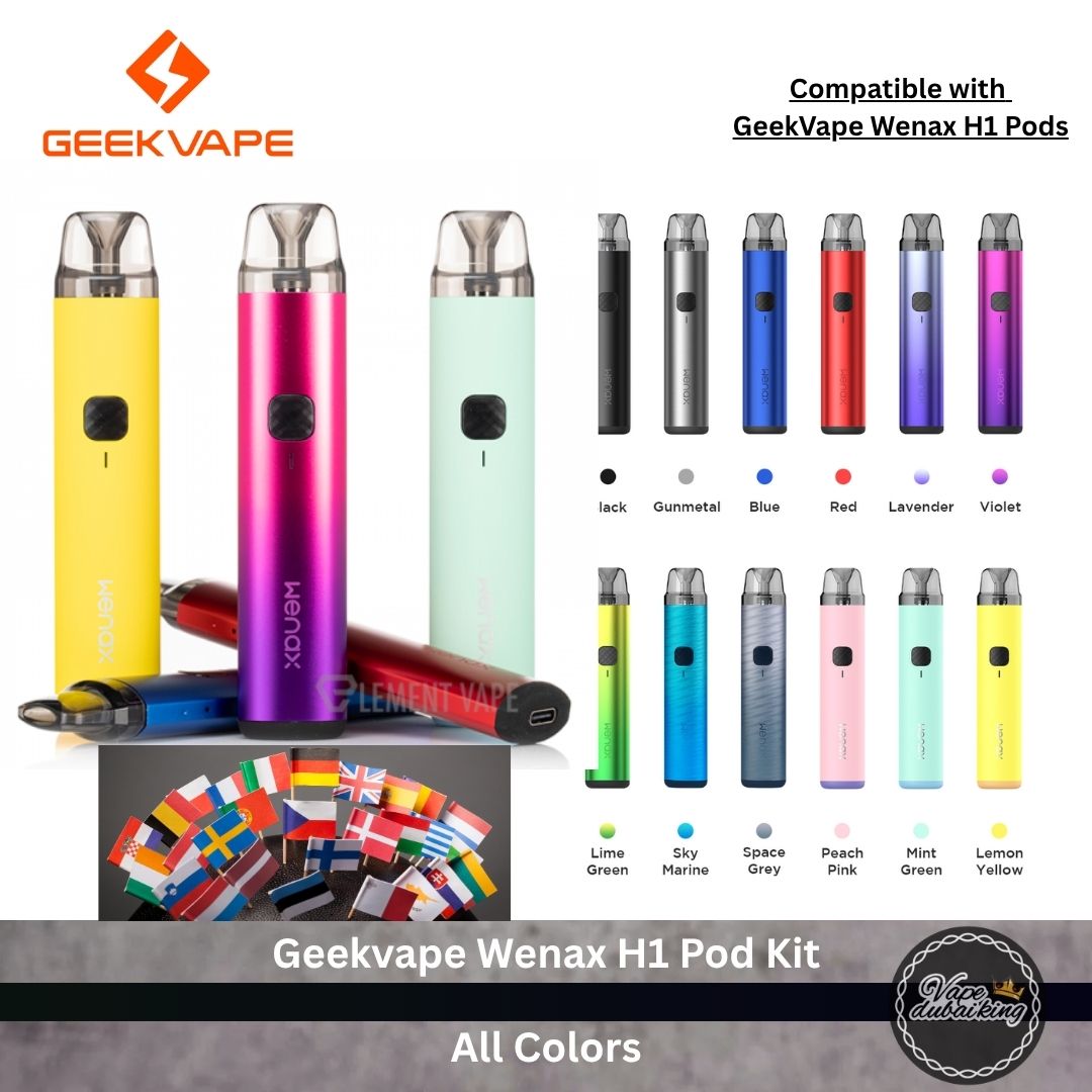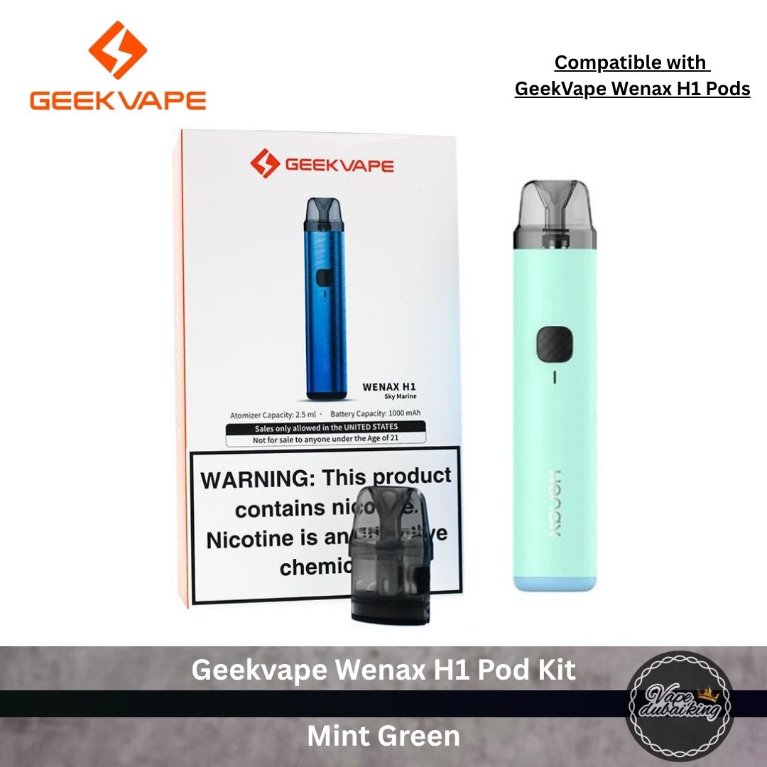 The Geekvape Wenax H1 Pod Kit offers a sleek, durable design with a 1000mAh battery, 19W power, USB Type-C port, delivering up to two days of consistent MTL vaping. Its leak-resistant pods, adjustable power settings, and dual activation modes (auto-draw and button-press) ensure a user-friendly and reliable experience. It’s compatible with 2.5ml wenax H1 refillable pods, including 0.7Ω mesh and 1.4Ω mesh coil options for versatile vaping experiences.