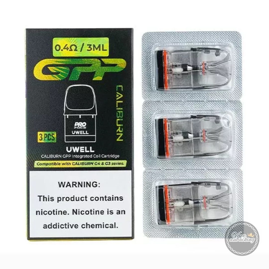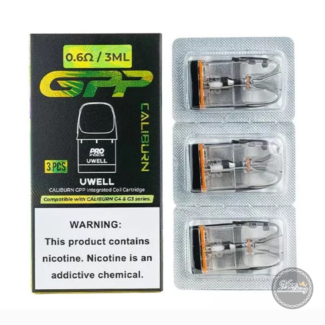 GPP, short for G Pod Platform, represents Uwell’s innovative approach to creating a universal pod system. Launched alongside the Caliburn G3 pods, this system utilizes a single pod type compatible with both existing kits and future models. While the GPP pods appear nearly identical to the G3 pods externally, they maintain the same four resistance levels and mesh coil construction. The real enhancements are found internally, featuring the upgraded PRO-FOCS 4.0 flavor technology, an improvement over the 3.0 version found in G3 pods. Additionally, GPP pods incorporate a refined version of the U² anti-leak construction. Like their predecessors, Uwell Caliburn GPP Replacement Pods are compatible with all G3 and G4 pod system vape. G3 pods are available in packs containing 4 pieces, whereas Gpp pods come in packs of 3 pieces.