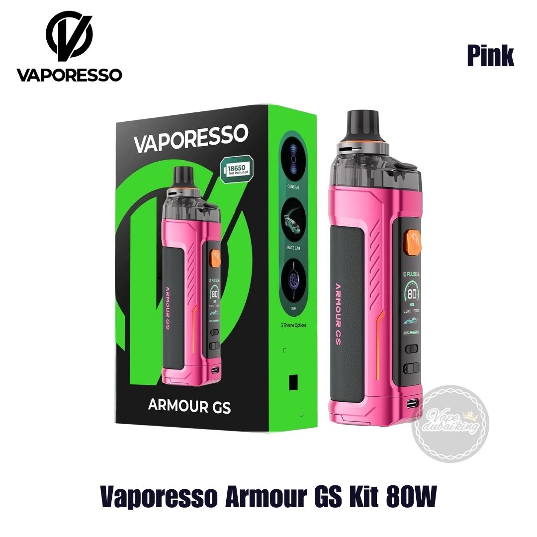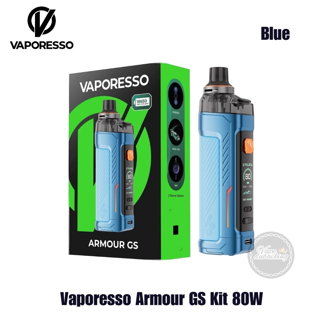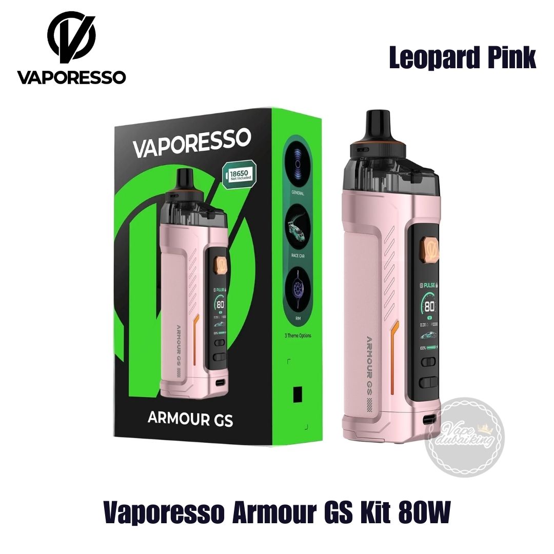 Vaporesso Armour GS Kit is small but powerful. It is powered by an 18650 battery (Not Included) that gives up to 80W of power, and you can recharge it quickly with the Type-C port, perfect for long vaping sessions. The TFT screen shows all the important info like puff count, e-liquid levels, and battery life. The four-level airflow control lets you easily adjust your vape. Also, this kit is designed for convenience and comfort, featuring a leather grip and compatibility with Vaporesso Series Pod Cartridges.