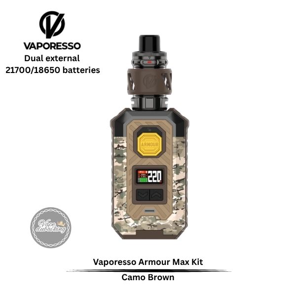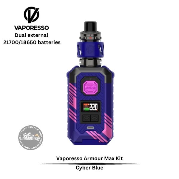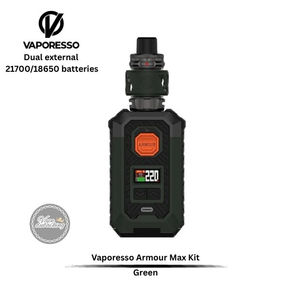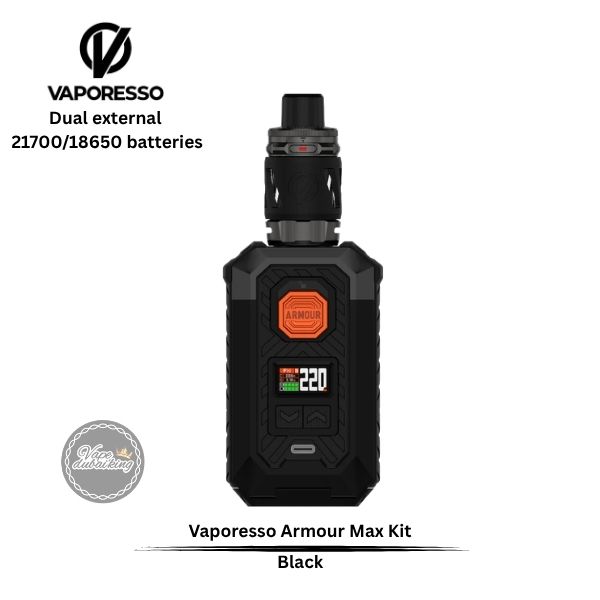 The Vaporesso Armour MAX Required dual 21700 batteries or 2x 18650 batteries, ensuring ample power for extended vaping sessions. With a wattage range of 5W to 220W, users can tailor their vaping experience to their liking. The device also supports fast charging via a Type-C connection, allowing for quick recharges and minimal downtime, making it suitable for those who vape on the move.