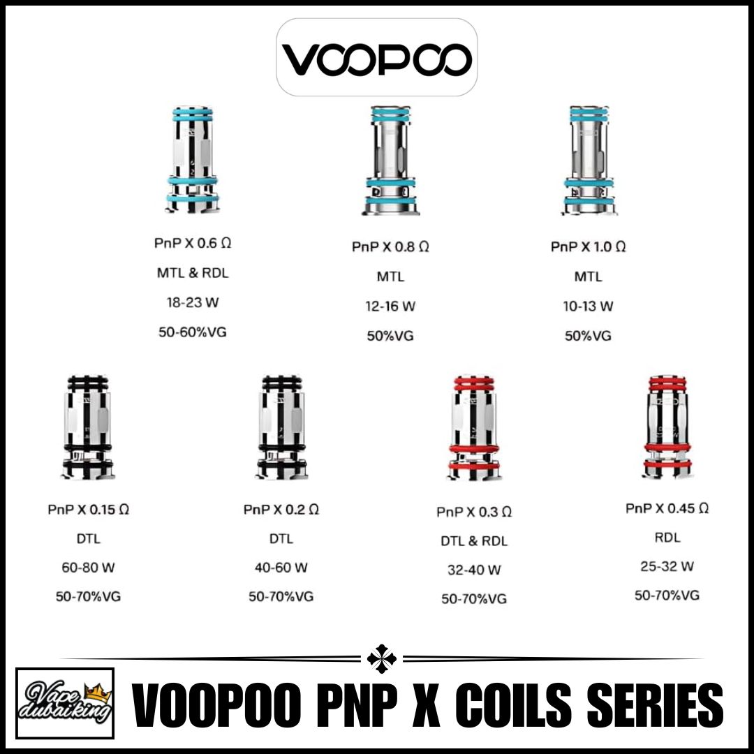 The Voopoo PnP X Replacement Coils are intended for use with the Voopoo Drag X2, Voopoo Drag S2 pod vape kits and the PnP X Pod cartridges. They come in a pack of 5 and are available in a range of resistances, suitable for MTL, DTL and RDL vaping styles.
